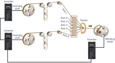 • Winding diameter compensation function – Speed and torque is controlled to allow for changes in the diameter of the winding and unwinding shafts during operation for quick and easy system setup.